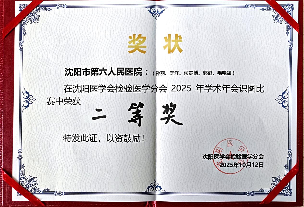 2025年10月11日、12日,在沈阳市医学会检验医学分会学术年会举办的首届检验识图大赛中,由沈阳市第六人民医院检验科、中心实验室五名骨干精英组成的代表队,从省、市两级13支队伍中脱颖而出,斩获亚军的优异成绩,彰显了市六院检验学科建设的深厚底蕴与多学科协同发展的综合优势。