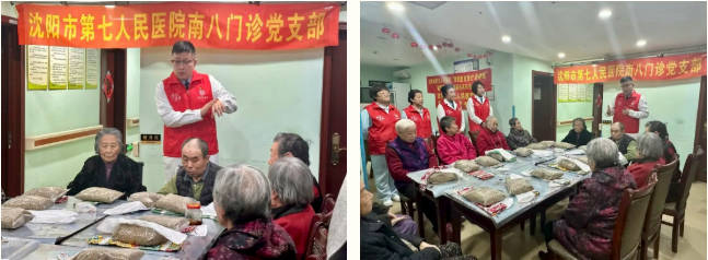 重阳佳节,情暖金秋。10月29日,为进一步落实市卫健委“强党建优医疗促健康”专项行动,弘扬中华民族尊老敬老的传统美德,切实关注老年人的身心健康,在沈阳市第七人民医院党委的统筹指导与大力支持下,医院南八门诊党支部联合和平区华光社区,共同走进水韵兰亭都市养老院,开展“重阳节敬老、爱老,关注老年健康”健康科普咨询服务活动,为养老院的老人们送去温暖与关怀。
