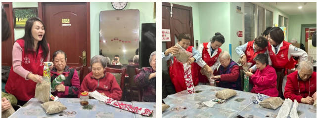 健康服务之后,欢乐的手工互动环节随之开启。和平区华光社区的工作人员带着提前准备好的布料、艾草等材料,来到养老院活动室,手把手教老人们制作艾草颈椎枕。老人们兴致勃勃地拿起布料,在工作人员的协助下填充艾草、整理塑形,不一会儿,一个个贴合颈部曲线、散发淡淡艾草清香的艾草颈椎枕就在老人们手中完成。活动室里不时传来阵阵笑声,老人们在动手过程中既锻炼了手部协调能力,又感受到了节日的快乐和社区大家庭的关爱。