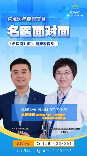 赵蕊教授、辛晓丽主任医师受邀参与中国交通广播FM99.3《你好·沈阳》栏目专访,围绕艾滋病传播途径、检测规范、合并感染防治等热点问题展开解读,结合临床案例澄清认知误区,介绍医院多学科协作诊疗优势,以专业解析提升公众科学认知水平。
