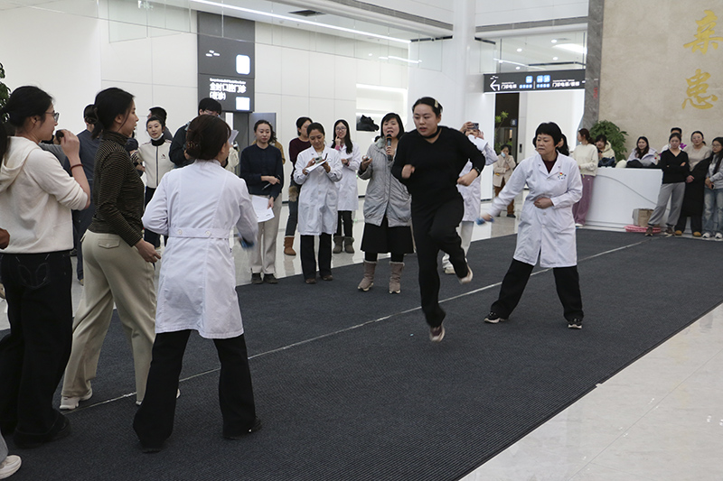 比赛正式开始前,医院党委书记宋平同志致辞。同时全体参赛队员和现场观众认真完成了热身动作,为接下来的比赛做好了充分准备,烘托了大赛氛围。